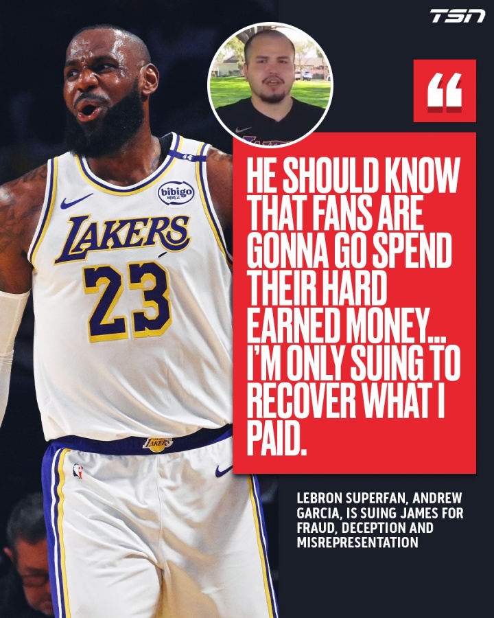 Andrew Garcia, một người hâm mộ Lakers suốt đời 29 tuổi, đã đệ đơn kiện lên Tòa án Khiếu nại Nhỏ Quận Los Angeles vào thứ Tư, cho rằng LeBron James nợ anh ta 865,66 USD. James được cho là đã ám chỉ rằng anh ấy sắp tuyên bố giải nghệ.
