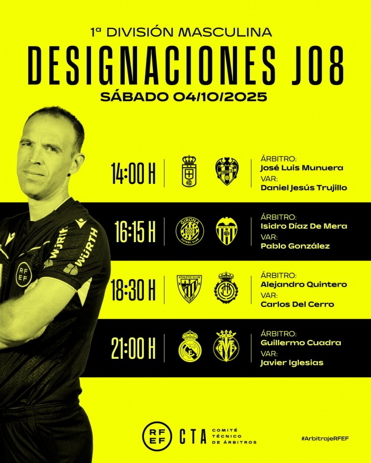 La Liga đã chính thức công bố các thỏa thuận trọng tài cho trò chơi ngày 4 tháng 10, với việc Cuadra thực thi Real Madrid vs Villarreal.